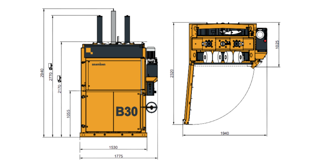 - מידות פתח הזנה גובה X רוחב: 560X1200 מ״מ