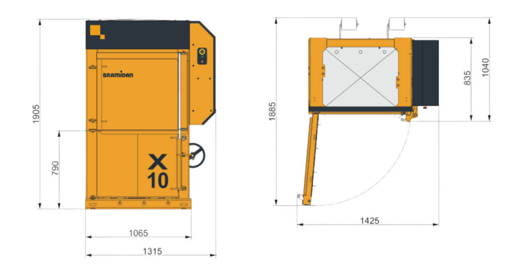 - מידות פתח הזנה גובה X רוחב: 800 x 610 מ״מ