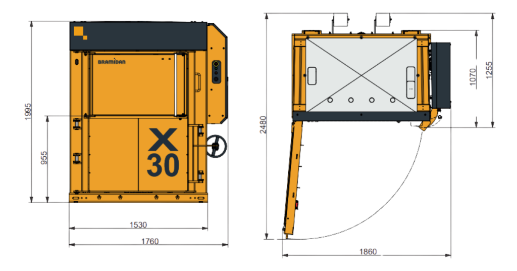 - מידות פתח הזנה גובה X רוחב: 665X1090 מ״מ